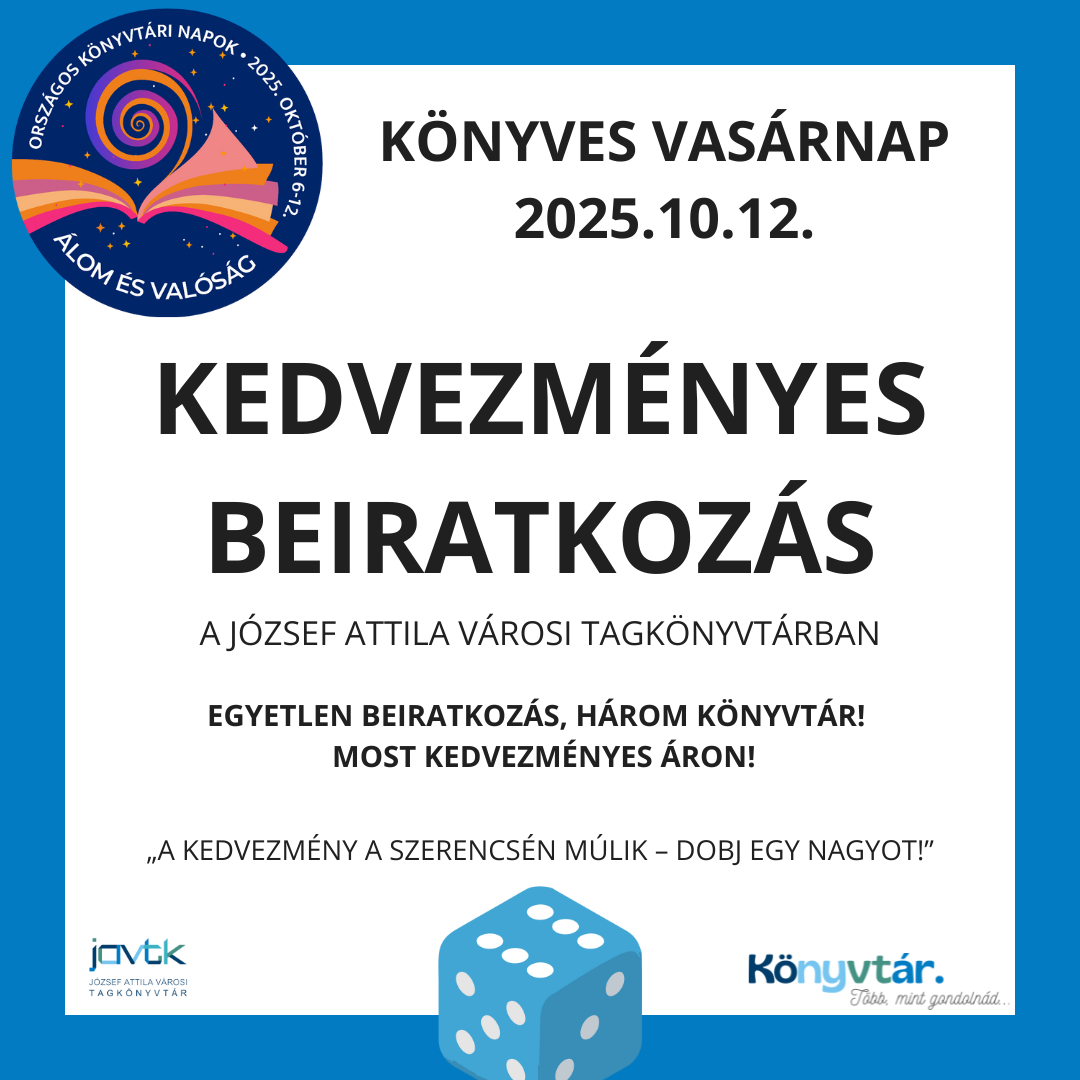 Gyere el Könyves Vasárnap a könyvtárba, dobj a dobókockával, és szerezd meg a: