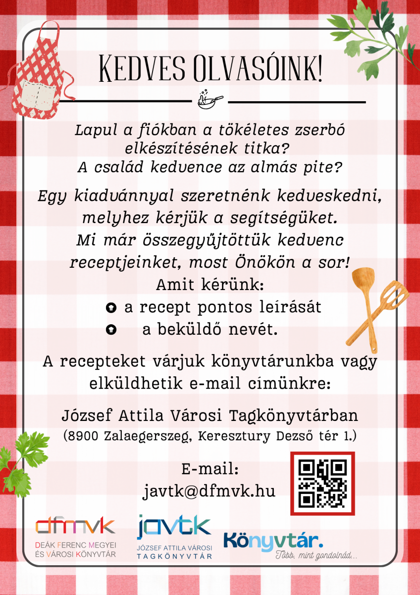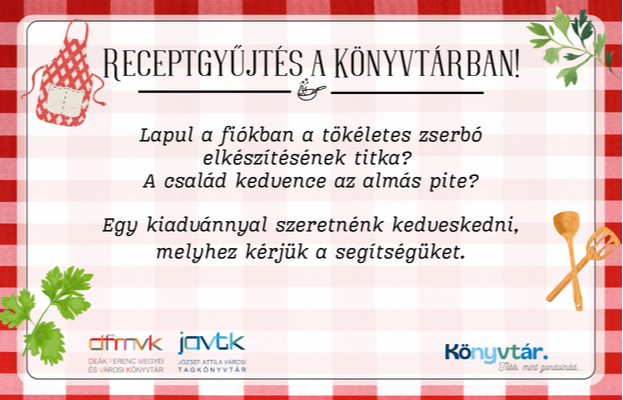 A recepteket várjuk könyvtárunkba vagy elküldhetik e-mail címünkre: javtk@dfmvk.hu